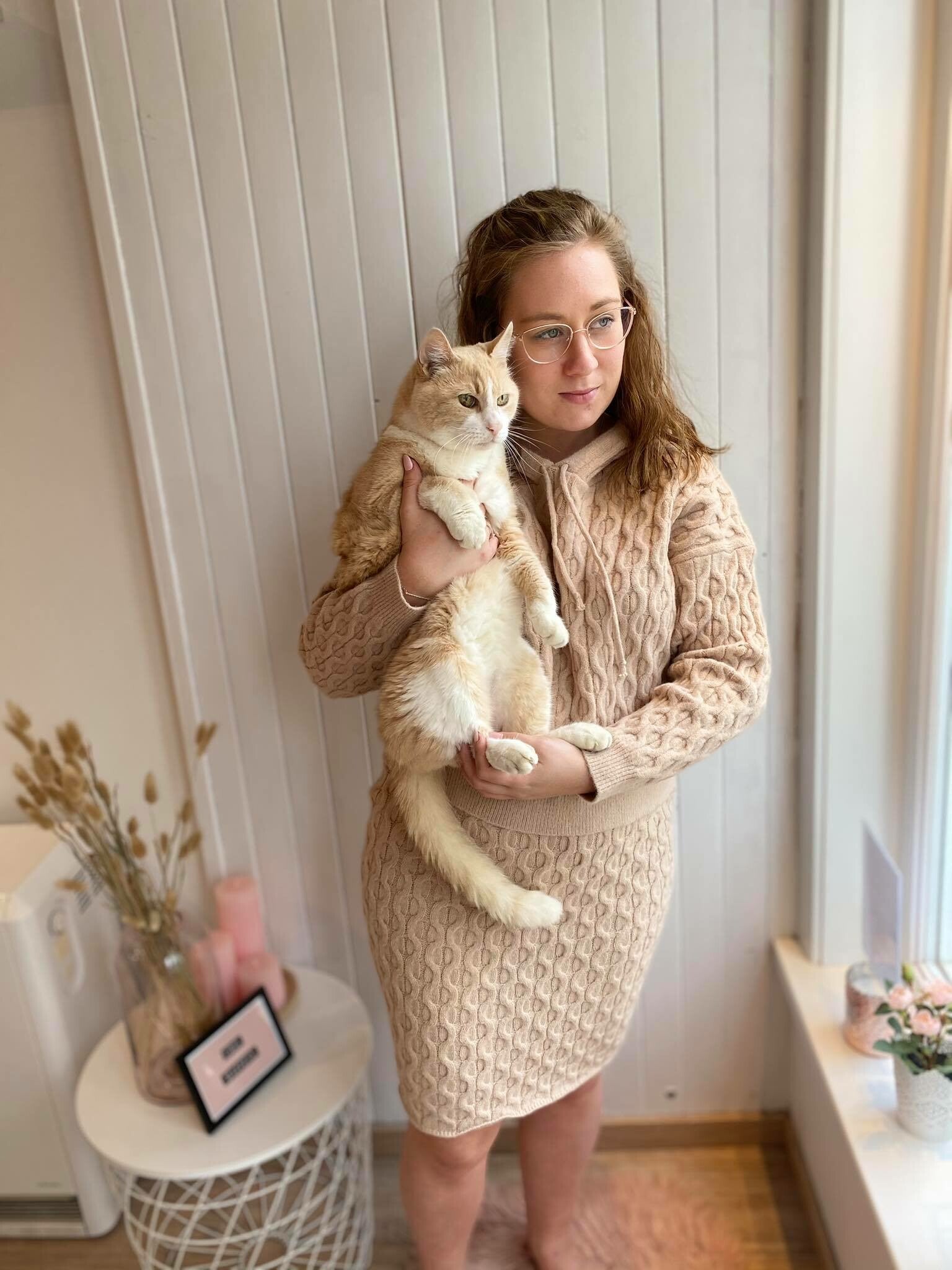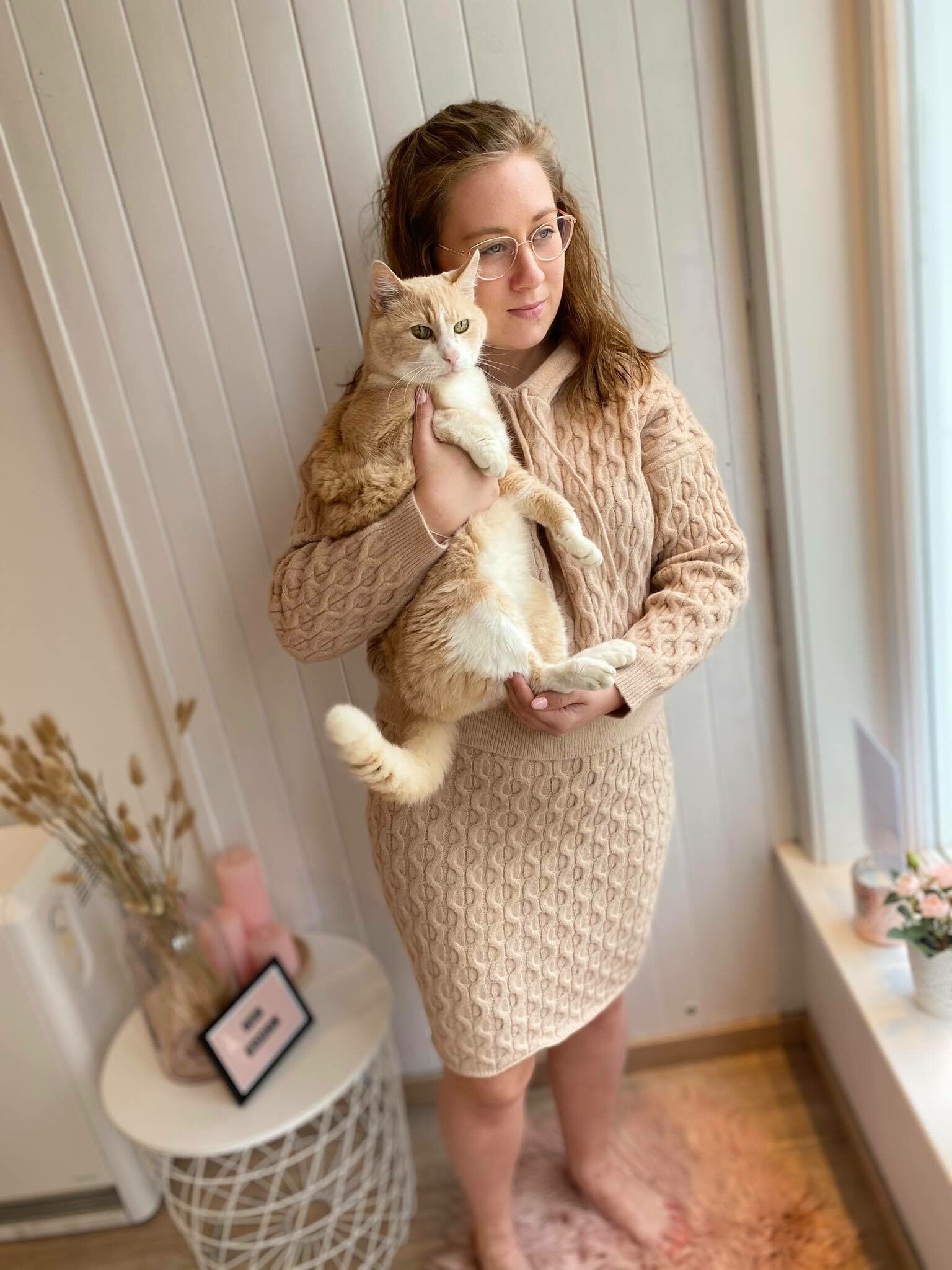 Dit comfortabel huispakje is een mooie combinatie van een sweater met kap en maakt het mooi af met een comfy & zacht rokje.
